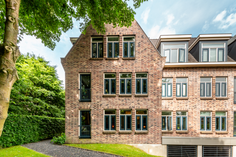 Vanaf de straat valt direct op hoe stijlvol deze woning is ontworpen. De gevels zijn gemetseld in kruisverband en voorzien van karakteristieke rollagen, houten accenten en originele luiken. De markante raampartijen en de met kruispannen gedekte kap versterken het monumentale karakter. Als hoekwoning in een blok van drie vormt het geheel een prachtig architectonisch ensemble.